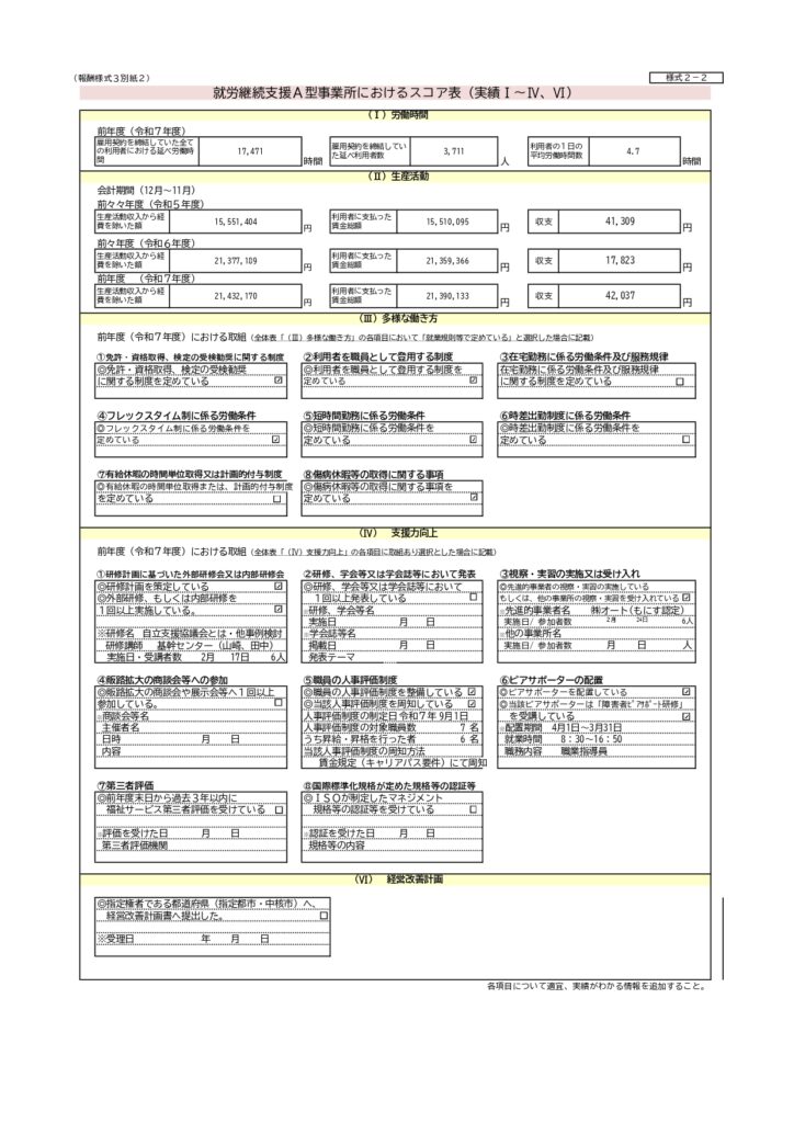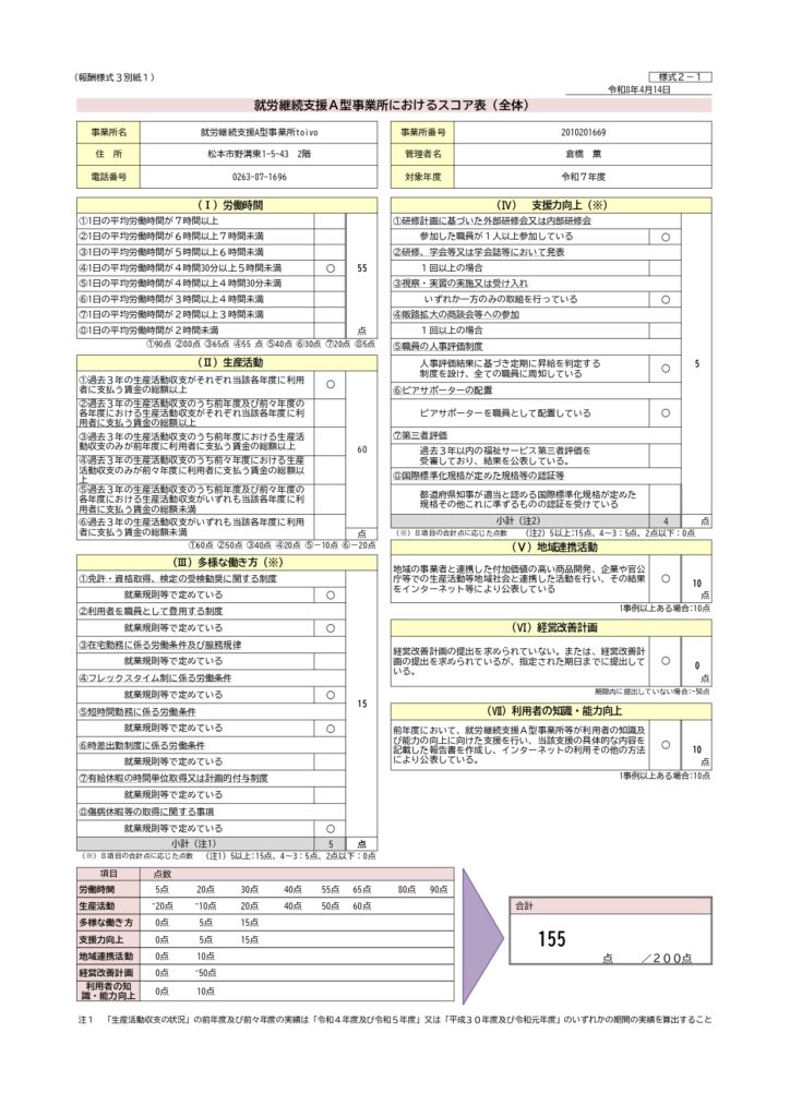 A型事業所スコア表公表