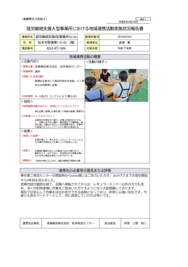 令和7年度 スコア表・地域連携活動実施状況報告書一式